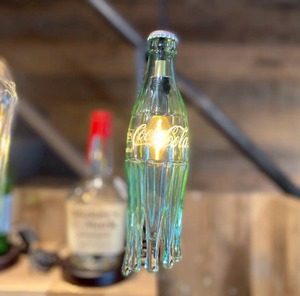 コカコーラ空き瓶リメイクランプです。 シーリングソケット対応です。 電球は交換可能です。 ソケットから電球の長さ約50センチ前後 ------☆☆-------☆☆---☆☆-------☆☆---☆☆-------☆ Re-glass(リグラス) 使い終わったビンは埋め立てゴミになってしまう為、「ゴミを減らしてリメイクしたビンを身近に感じてほしい」という想いでランプシェードや食器に生まれ変わらせています。 一つ一つ職人の手によってガラス小物として再生させる。 鮮やかな色彩と、透明感がさえる美しいガラス小物は一つとして同じ作品はできません。 世界に一つだけの作品をお楽しみください。