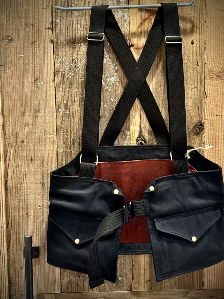 厚手のキャンバスをベースに、背面のクロスストラップ構造でライディング時のフィット感を追求。